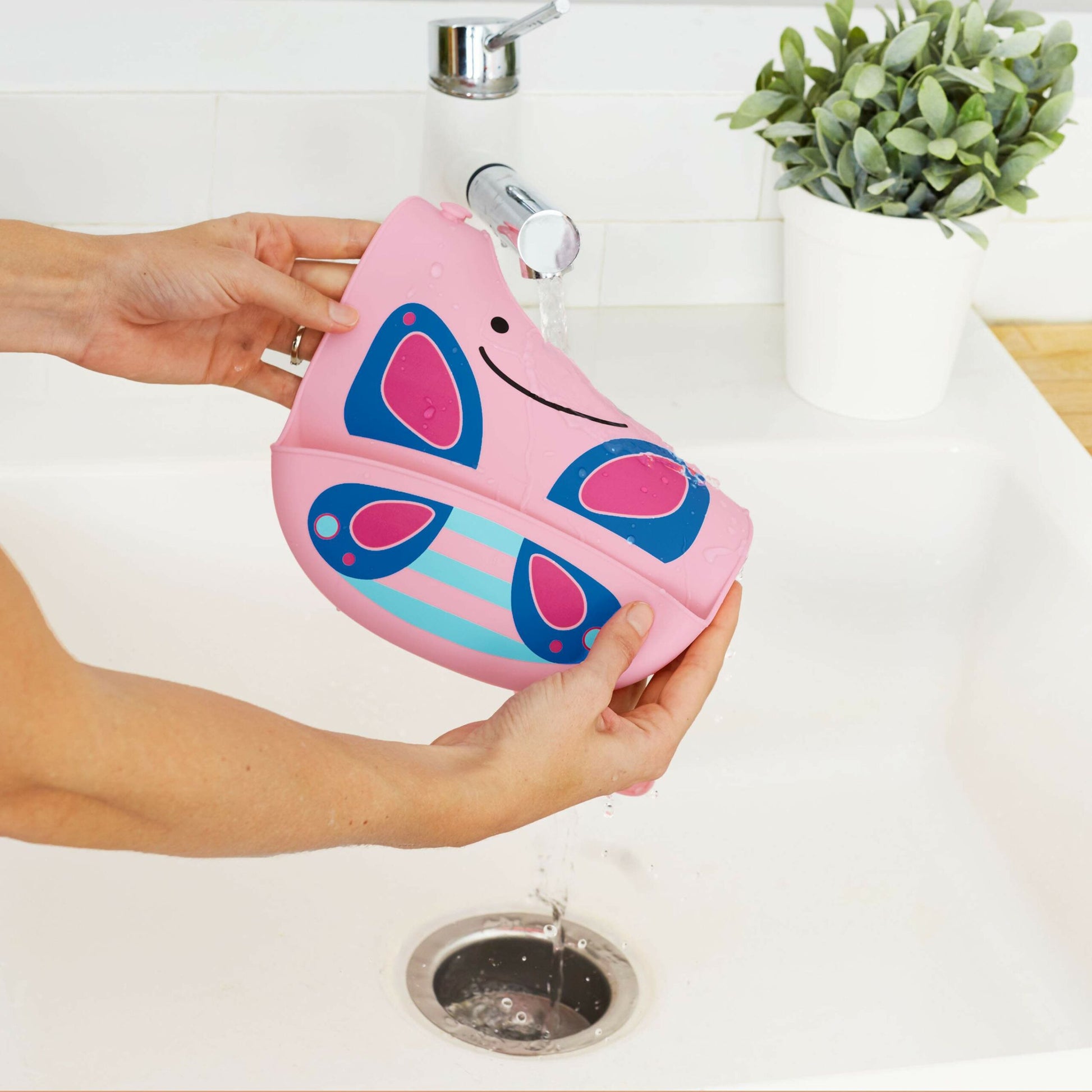 ¡Los entretenidos Baberos de silicona de Skip Hop te ayudarán a proteger la