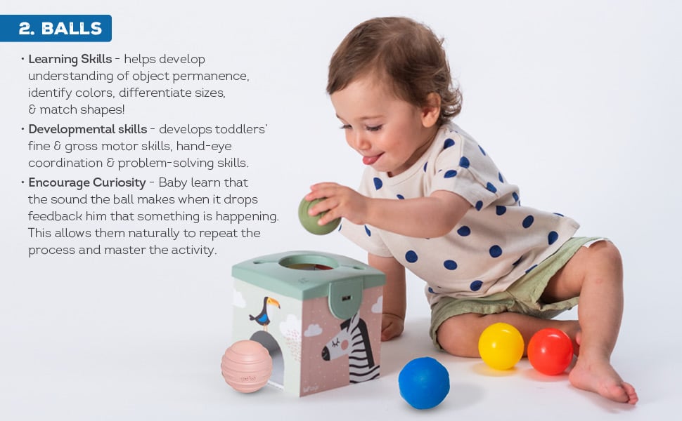 Caída de bolas: desarrolle la comprensión del bebé sobre la permanencia de los objetos.