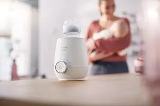 Prepare alimentos perfectamente calentados en minutos con un calientabiberones que controla la temperatura por usted. El control de temperatura inteligente evita que la leche y la comida del bebé se recalienten y ajusta el patrón de calentamiento para un calentamiento rápido.