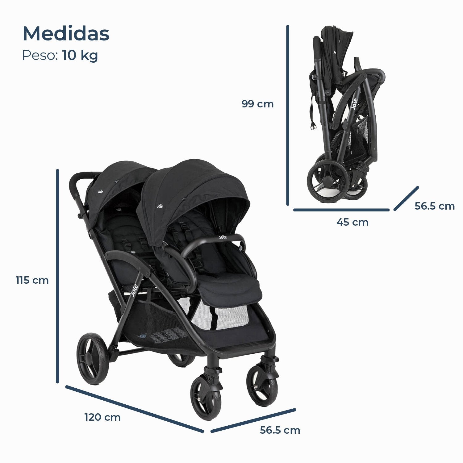 El Coche Evalite Duo es el coche dúo que necesitas. Su asiento trasero es apto para recién nacidos por su reclinado total y por ser compatible con las sillas JOIE Gemm, I-Gemm e i-Snug sin necesidad de adaptadores. Las capotas retráctiles cuentan con toldo UPF 50+ y el asiento trasero con ventana para visualizar al bebé. La cesta extra Grande, suspensión en todas las ruedas y el manejo individual de las ruedas delanteras hacen del coche Evalite Duo fácil de maniobrar