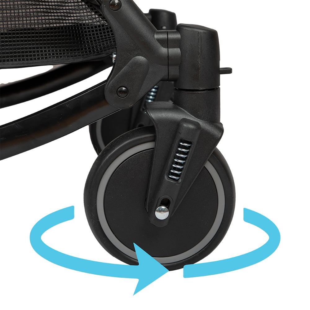 Incluye un sistema de freno vinculado, ruedas delanteras giratorias, ¡y puedes plegarlo fácilmente con sólo una mano!