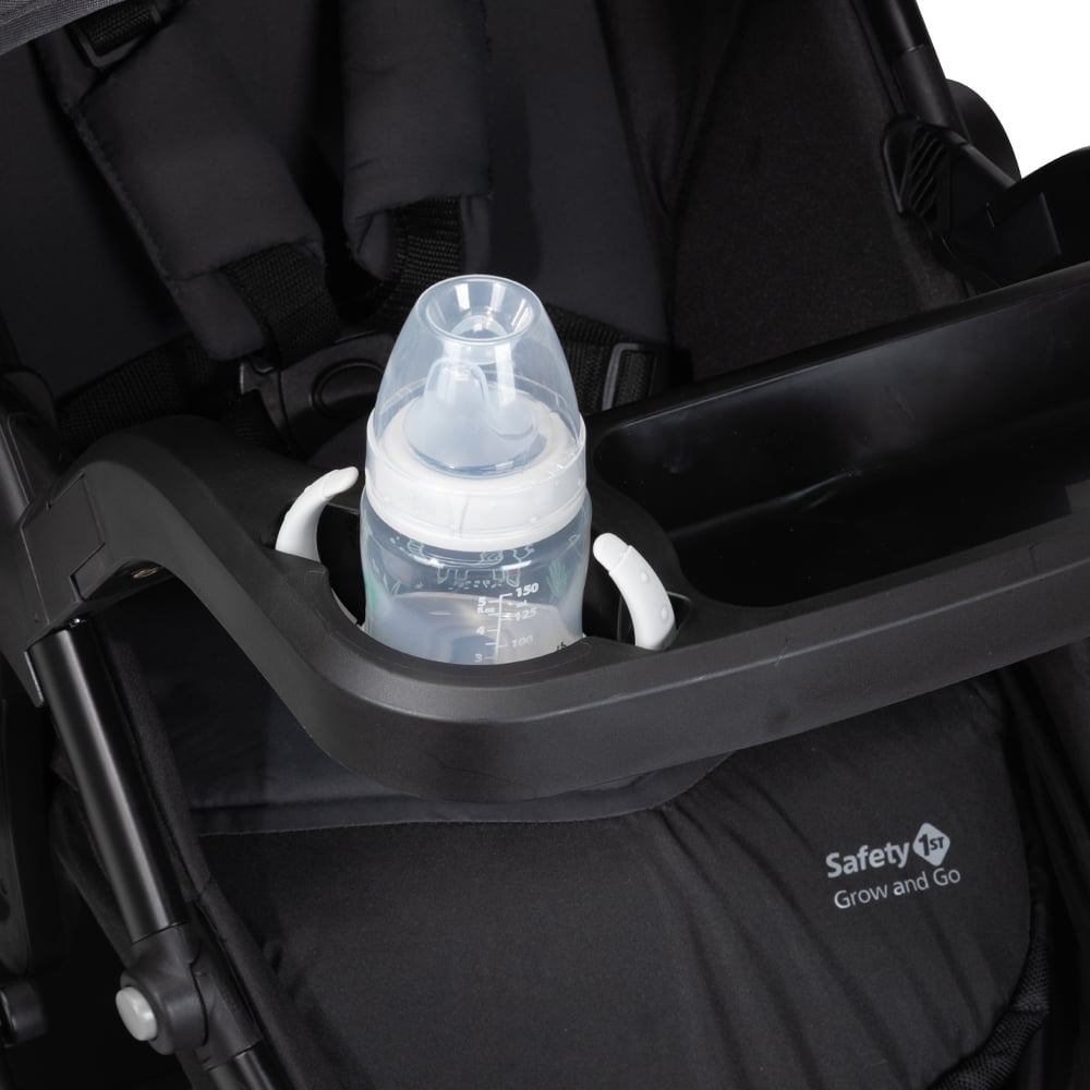 - La bandeja para niños de tamaño completo incluye un portavasos con agarre de goma que acepta una taza con boquilla de 2 asas
