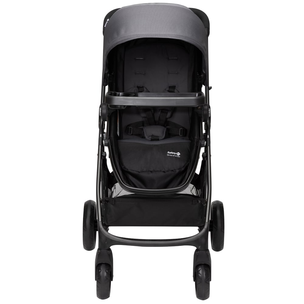 - La barra elevadora y la bandeja abatible ayudan a los niños pequeños independientes a subirse a la carriola