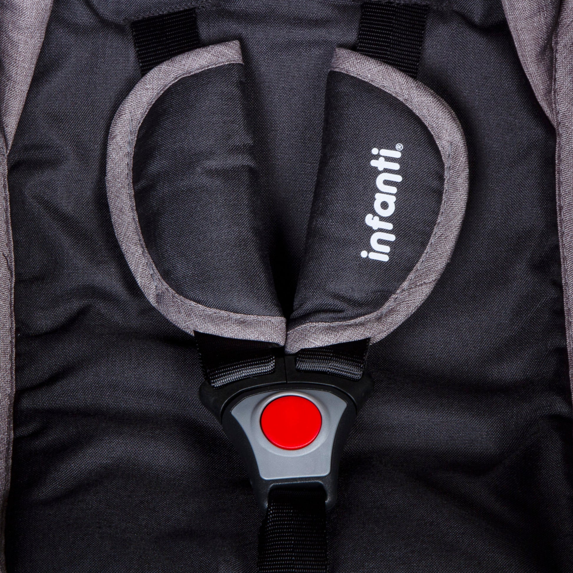 Por otra parte, el arnés de cinco puntas lo mantendrán firme al asiento,