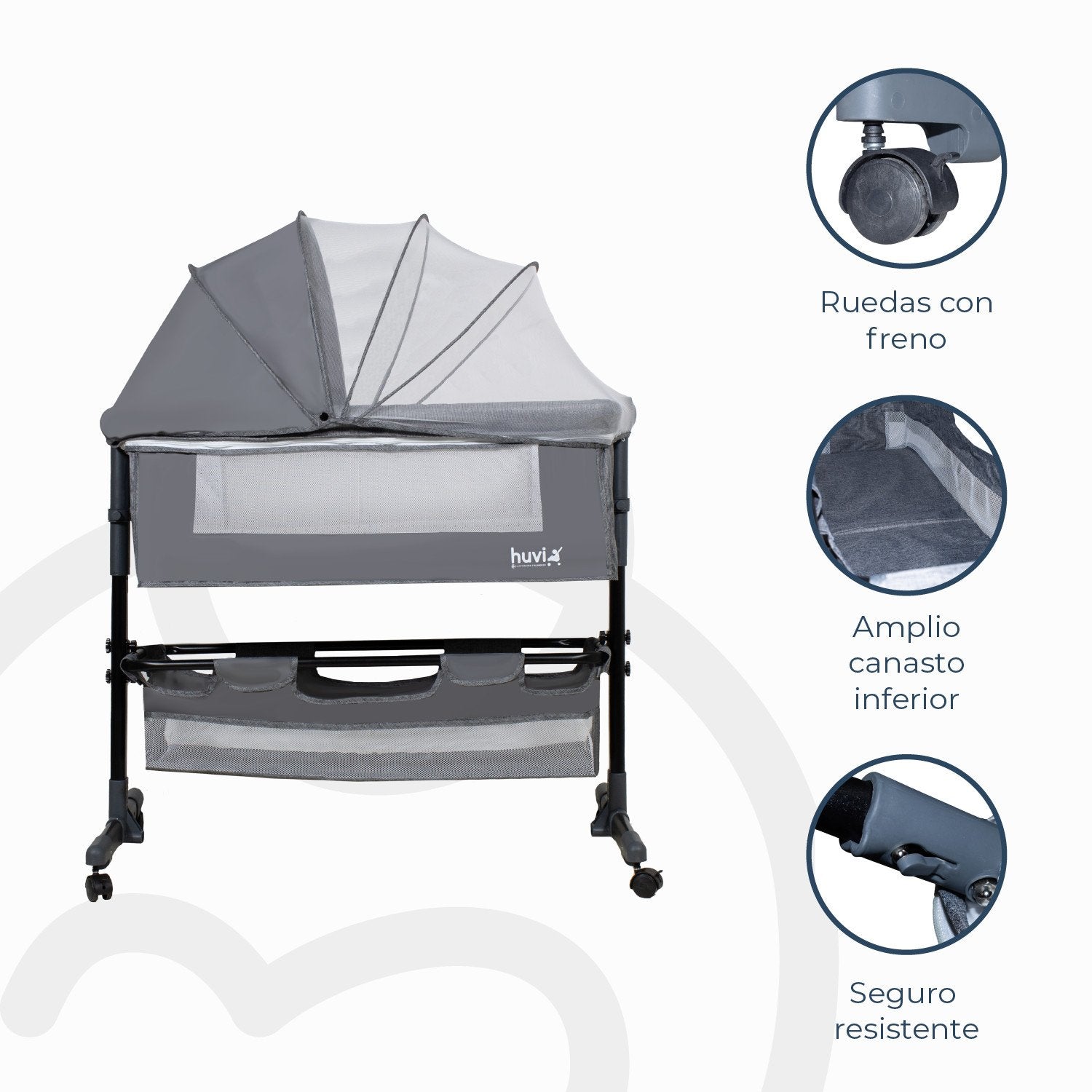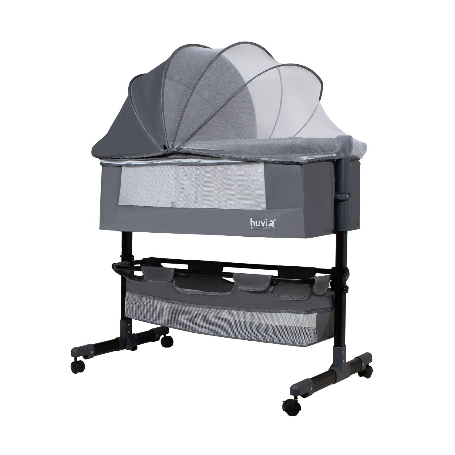 Cuna Colecho Cozy Con Colchón Mosquitero Y Canasto Gris Huvi