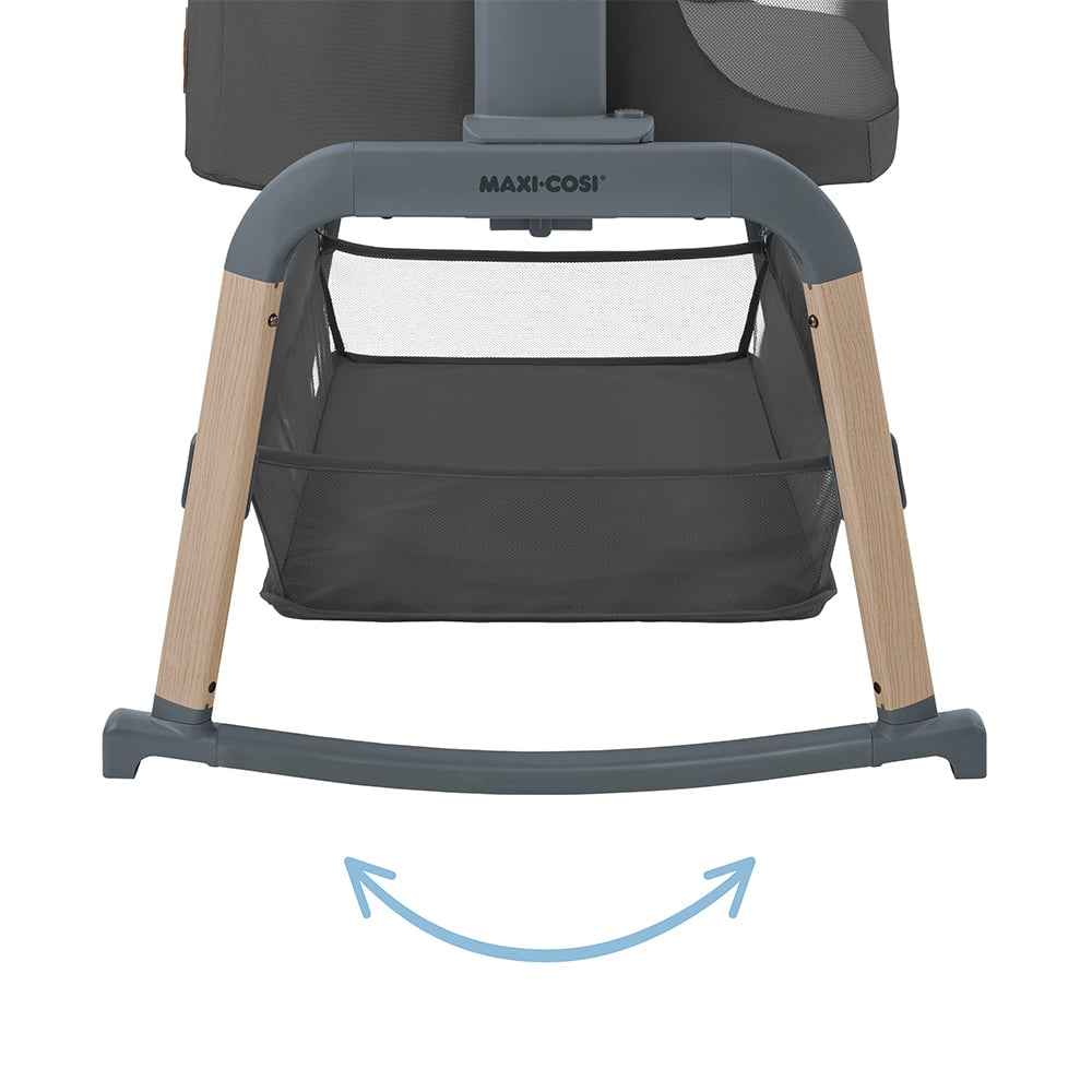 Lora Air, cuenta con una práctica función de balanceo para que puedas calmar fácilmente a tu bebé. Simplemente mueve el soporte del pie arqueado y acuna tu bebé para que se duerma.
