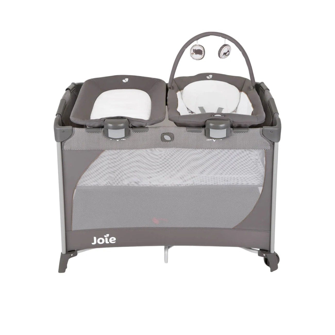 Pequeña cuna viajera lista para ponerse en marcha en un instante, con cambiador de liberación rápida y un moisés para dormir que se retira en cuestión de segundos.