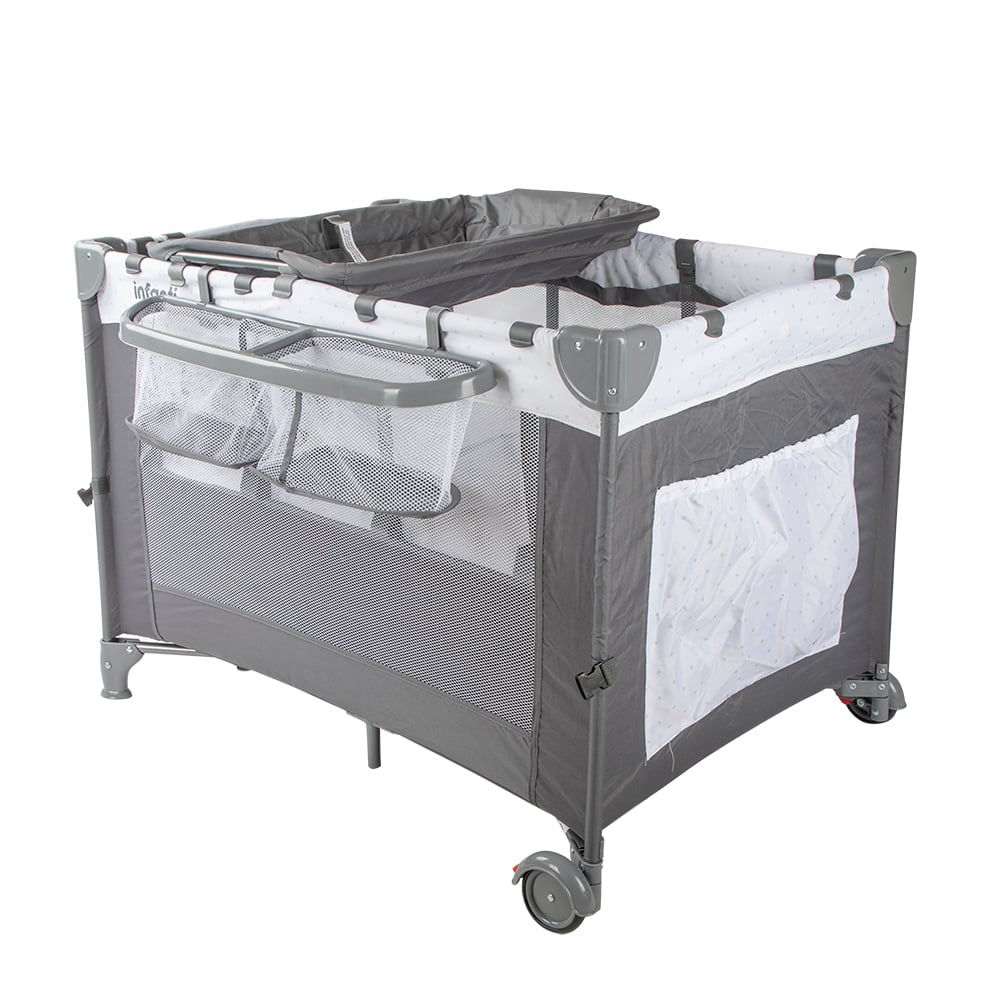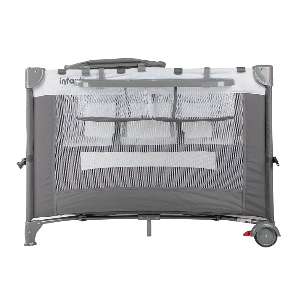 Esta cuna cuenta con un práctico organizador plástico, una bolsa lateral para sus juguetes y un mudador desmontable, el que puedes colgar o llevar donde tú necesites. Encuéntrala y conócela también en nuestras Tiendas Infanti.
