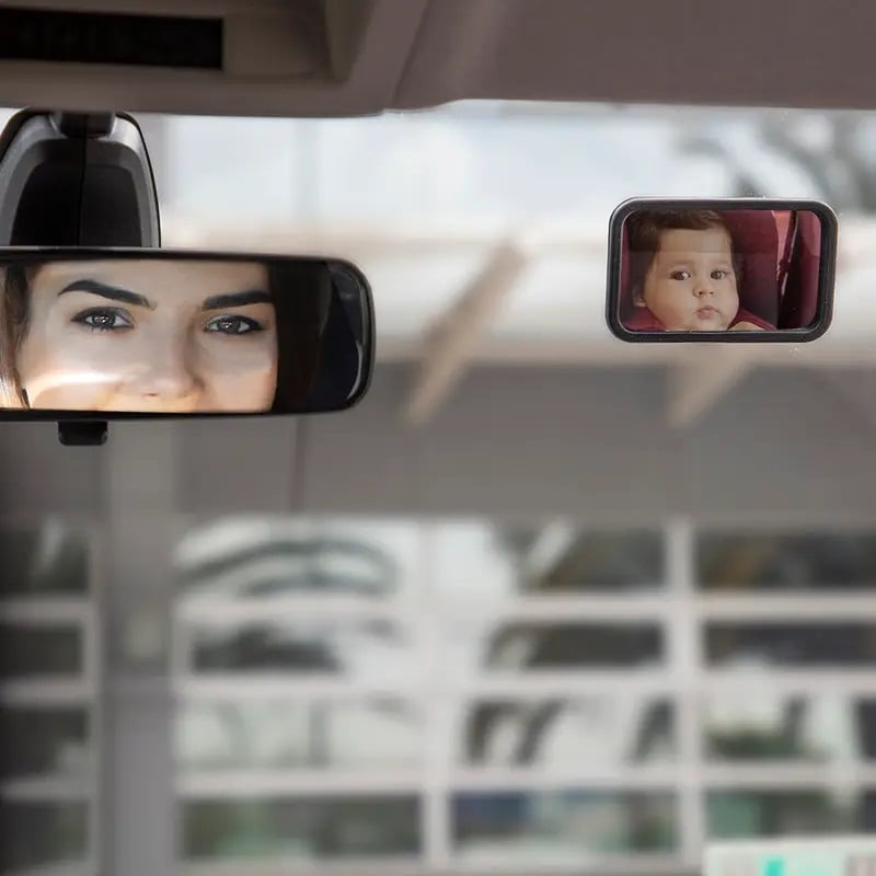 - Este espejo ajustable ayuda a los padres a vigilar a los niños en el asiento trasero.