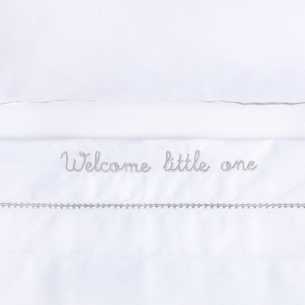 Juego De Sábanas Moisés/colecho Lisas Más Funda Blanca Borde Gris