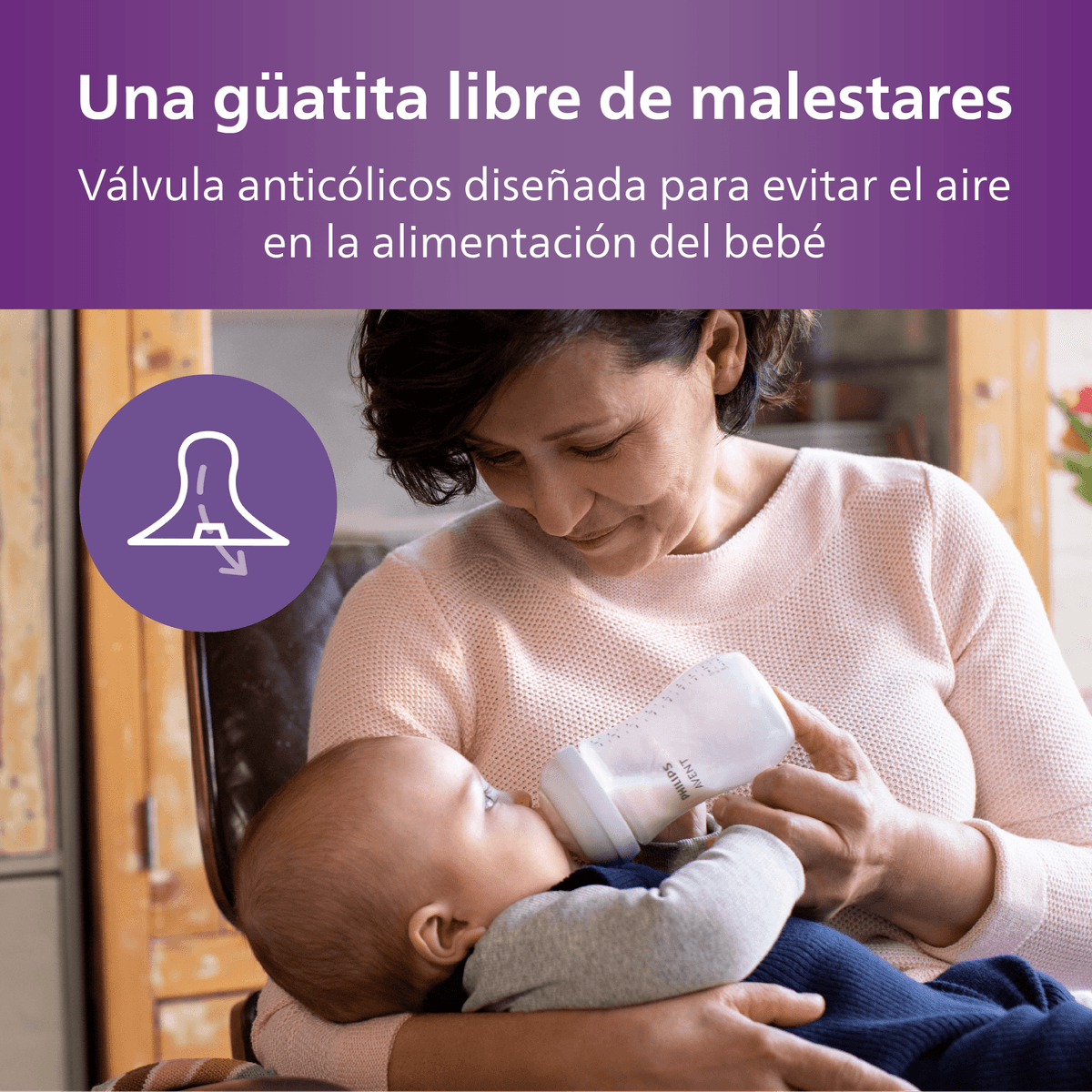 Una tetina que funciona como el pecho. La tetina Natural Response solo libera leche cuando el bebé succiona activamente. Los bebés pueden succionar, tragar y respirar siguiendo su ritmo natural, como en el pecho. Esto facilita la combinación entre la lactancia materna y la mamadera.