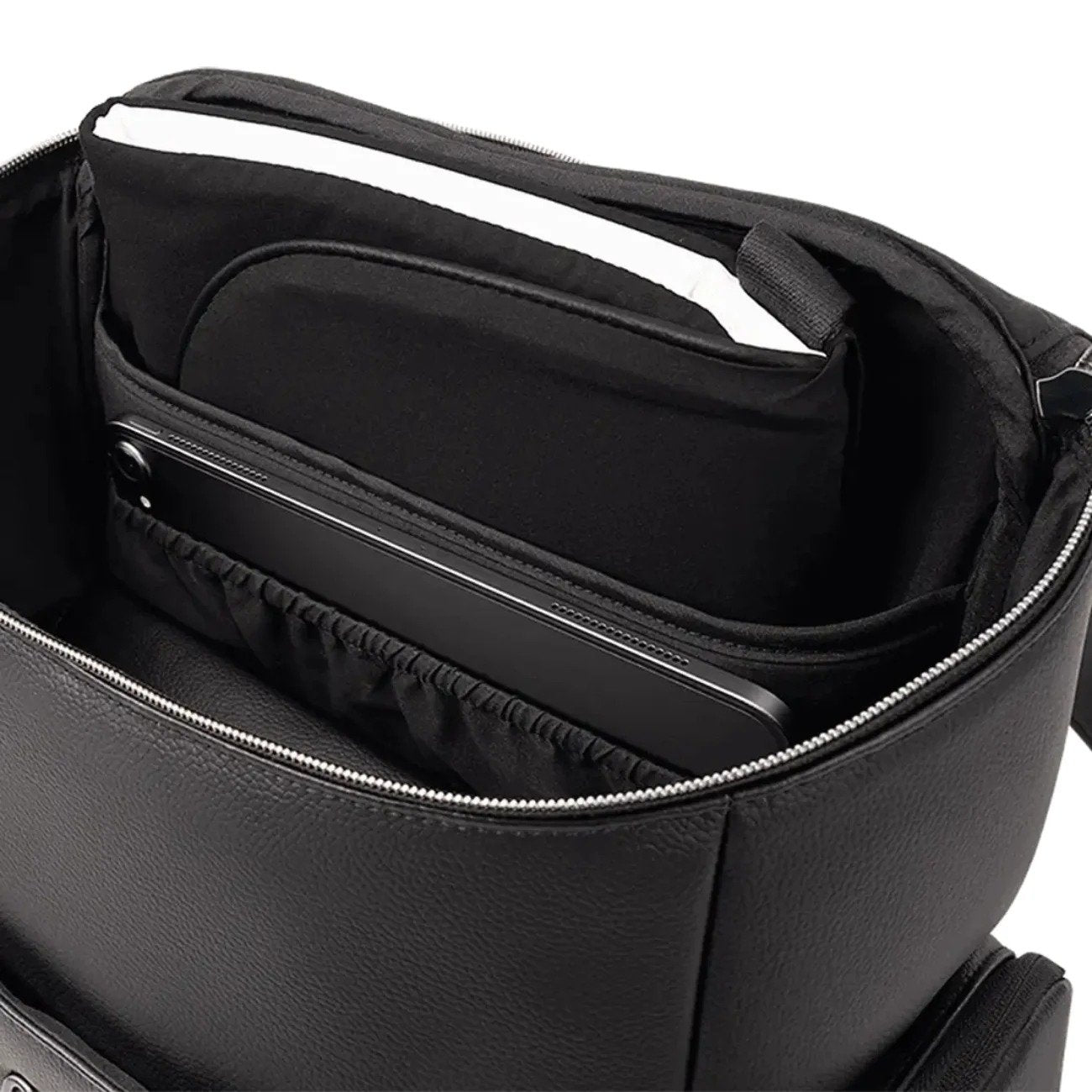 El bolso Essential redefine el lujo cotidiano con su elegante estilo de polipiel y su versátil funcionalidad para padres. Diseñada como una mochila multiusos que también sirve como pañalera, presenta un diseño ideal para el portátil con una cuidada variedad de bolsillos exteriores e interiores, un práctico bolso de mano para cambiador y una funda para carrito de equipaje para mayor comodidad en tus viajes.