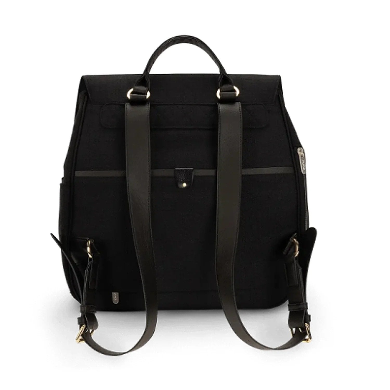 Se adapta a tabletas y portátiles de hasta 14 pulgadas. Comodidad El cambiador se despliega para formar una superficie limpiable donde colocar al bebé. Detalles Premium Estilo refinado con todos los detalles funcionales que necesitas. Acentos dorados cepillados: porque también debe verse bien Asa de mano y correas de mochila con detalles de cuero sintético de lujo Incluye bolsa protectora para mayor protección al guardarlo.