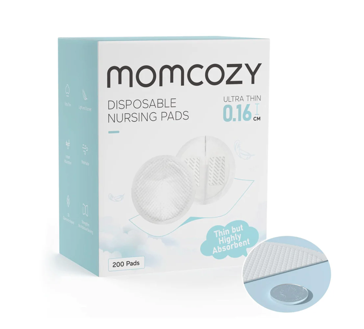 Pads Absorbentes de Lactancia Ultra Delgados Momcozy 200 un. - Protección Continua