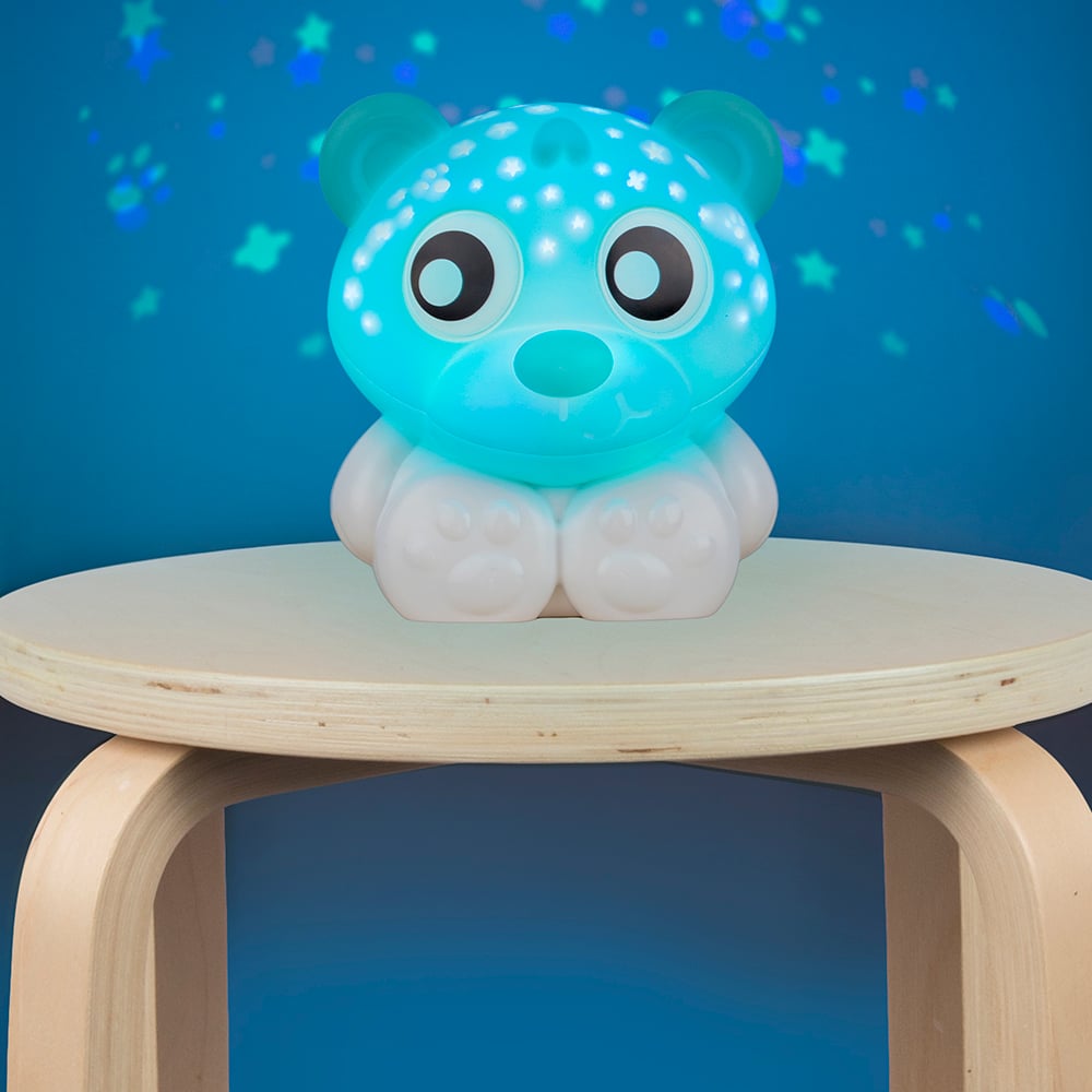 Simplemente selecciona un color o configura el modo de cambio de color y observa cómo el adorable oso ilumina suavemente la habitación de tu bebé.