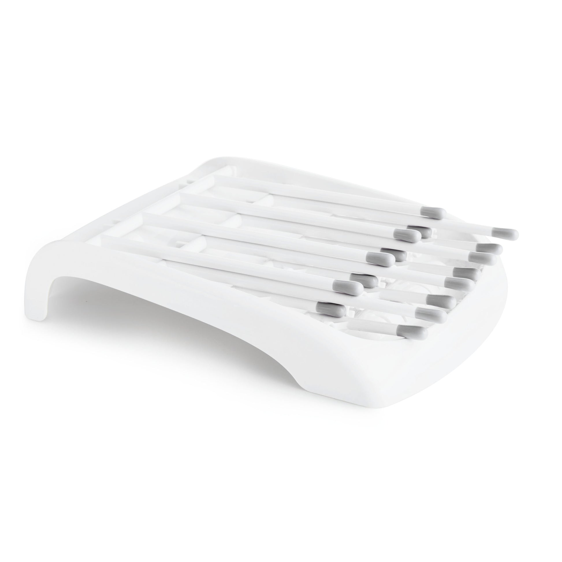 Sus dos alturas se adaptan a todos los tamaños de botellas y accesorios, y su fila con ranuras sostiene 8 discos de sellado estándar y de boca ancha en posición vertical.