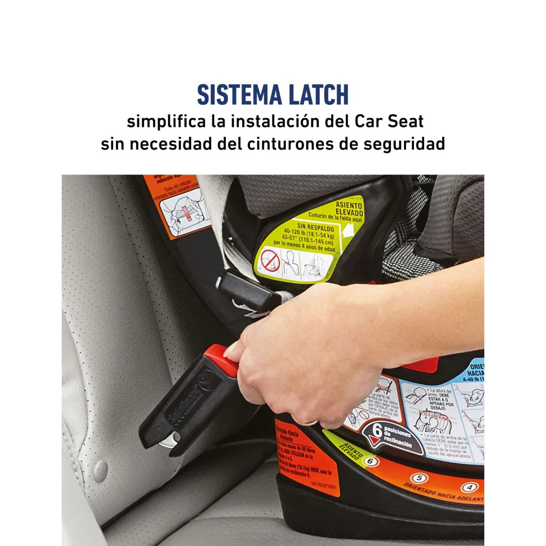 El sistema de arnés Simply Safe Adjust™ y el reposacabezas con 10 posiciones permiten ajustar el arnés y el reposacabezas simultáneamente, sin necesidad de re-enhebrar. Su reclinado en 6 posiciones garantiza la comodidad de tu hijo, mientras que el sistema InRight™ LATCH asegura una instalación rápida y fácil en solo un segundo, con un clic audible para confirmar su ajuste seguro. ¡Es la única silla de auto que necesitarás!