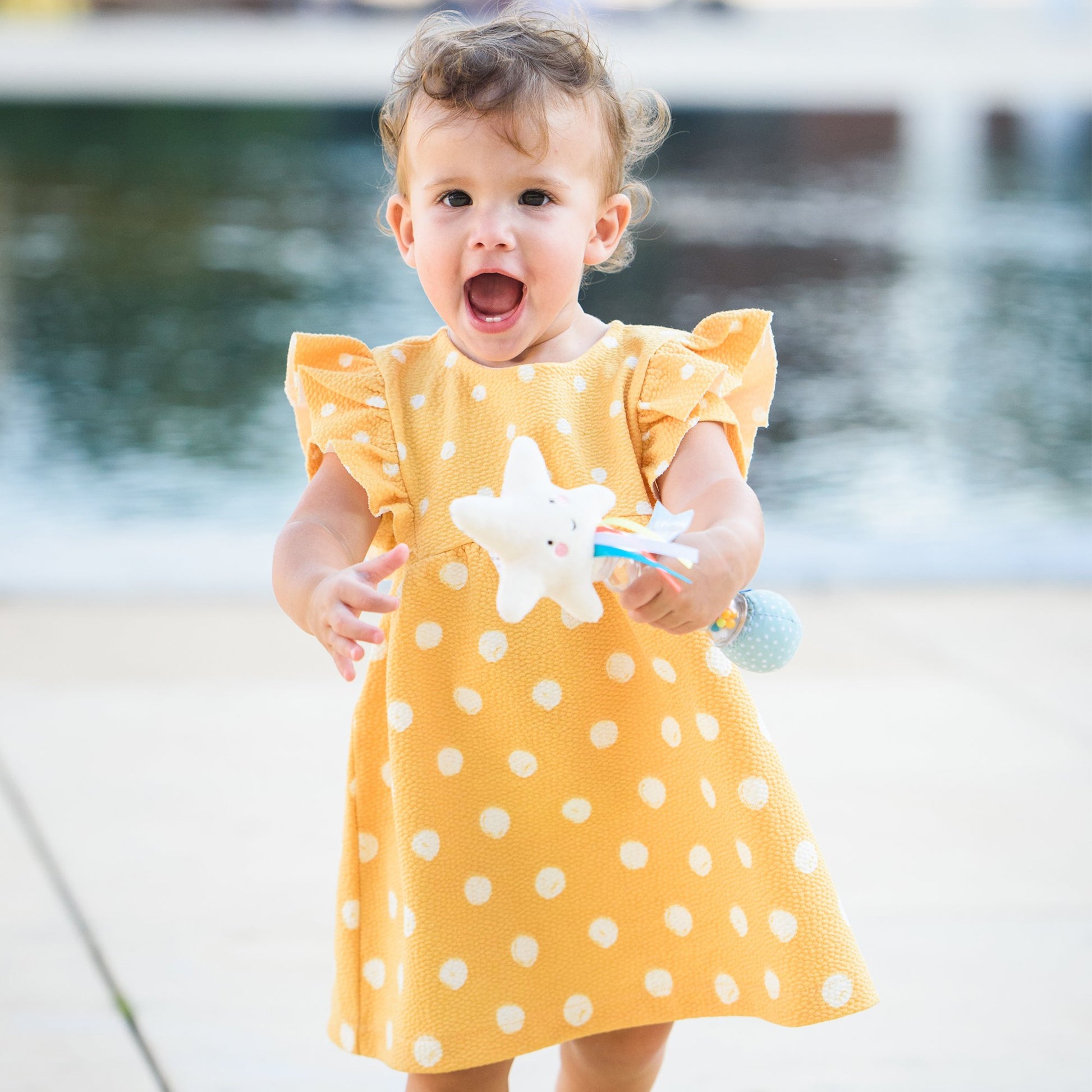 Con una estrella de peluche y cintas de colores para la exploración táctil, todo parte de nuestra colección Mini Moon.